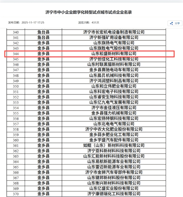 15588785706近日,濟寧市工業(yè)和信息化局正式公布“濟寧市中小企業(yè)數(shù)字化轉(zhuǎn)型試點企業(yè)已竣工項目(第一批)”認(rèn)定名單,我司憑借在數(shù)字化轉(zhuǎn)型領(lǐng)域的扎實積淀、創(chuàng)新實踐及顯著成效,成功躋身試點企業(yè)行列,這標(biāo)志著公司數(shù)字化轉(zhuǎn)型路徑獲得政府部門與行業(yè)專家的權(quán)威認(rèn)可,成為區(qū)域中小企業(yè)數(shù)字化升級的標(biāo)桿之一。
